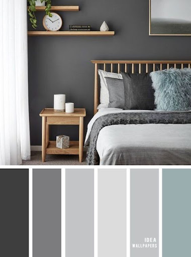There are four Behr paints that work well for painting an entire room all the walls and the ceiling in the same shade. Light greys can be contrasted with teals blues purples and pinks. To keep your bedroom from looking dull and drab pair a few different shades of gray together or add in other complementary colors.